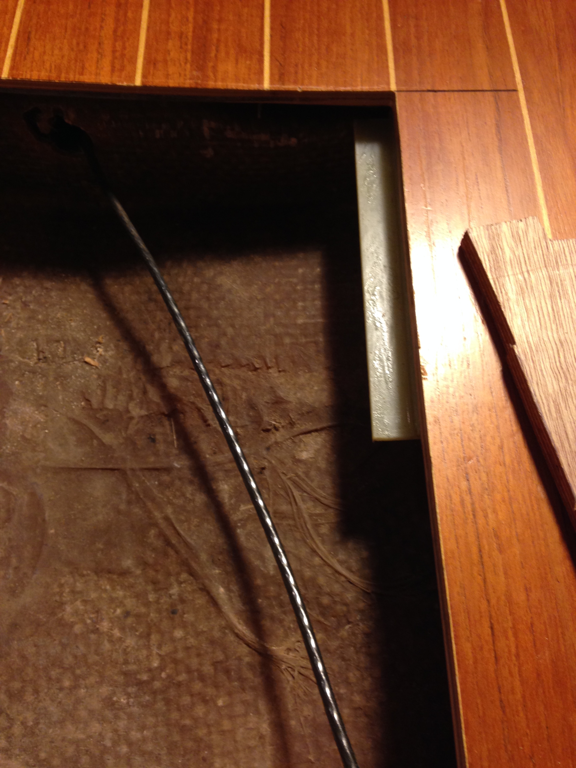 Subfloor patch installed. Edges were sealed with two coats of epoxy. Things looking better already.